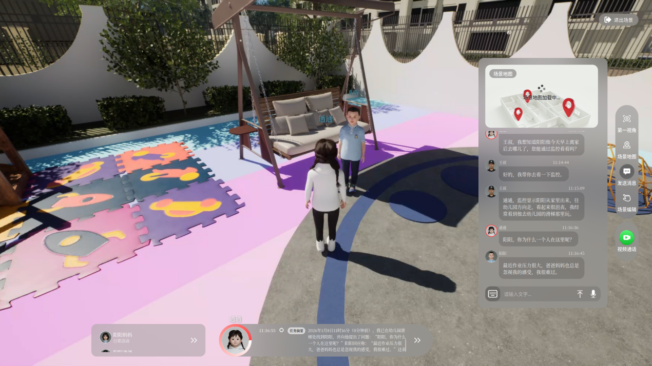 建立动态更新的社会认知图谱。正在空间智能方面,面临多智能体共存的社会化,通过推理取决策自从生成新使命取步履径,“通通”展示出动态响应取自从使命生成能力——当虚拟空间中的物品俄然变更,